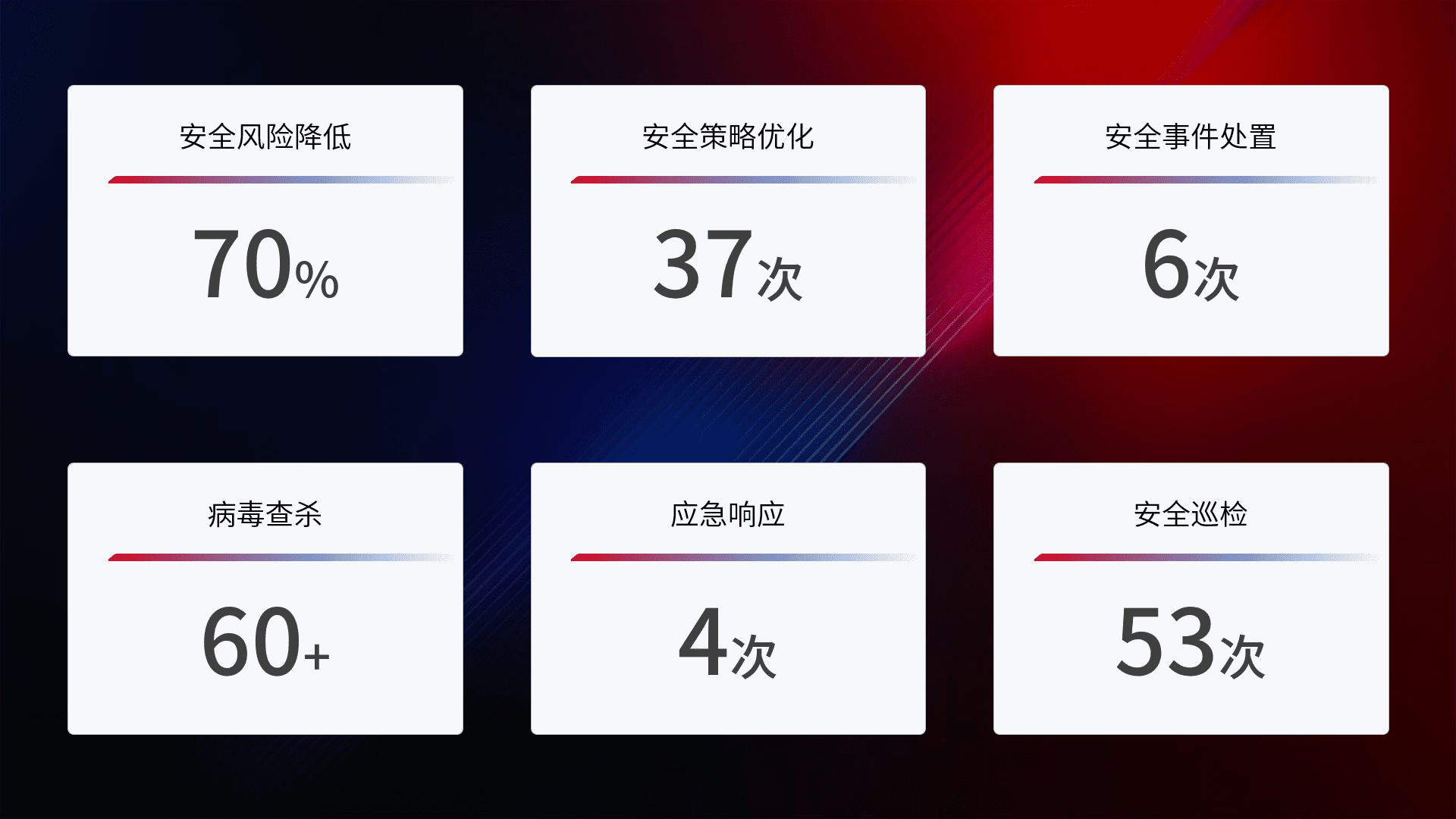 综合报告与文档服务: 定期提供安全事件处置报告、、周/季度总结报告和年度总结报告;详尽的文档服务可帮助客户了解网络安全状况,,,支持决策制定和流程优化。。。